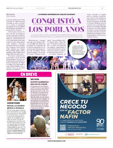 Tigres del Norte, entre otros. de la Luna”, “Perfume de Gar- La Sonora Santanera de ción de Juan Osorio.