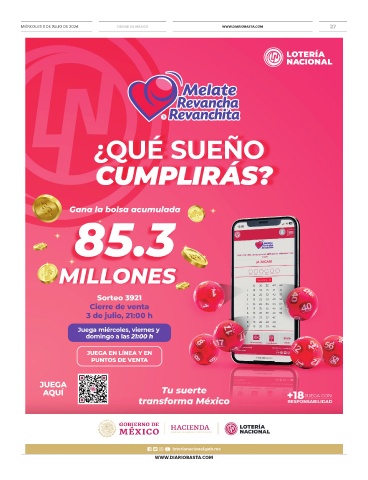MIÉRCOLES 3 DE JULIO DE 2024 CIUDAD DE MÉXICO WWW.DIARIOBASTA.COM 27 MARTES 7 DE MARZO DE 2023 WWW.DIARIOBASTA.COM