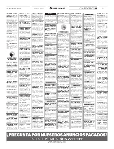 JUEVES 4 DE JULIO DE 2024 CIUDAD DE MÉXICO 55.22.19.90.95 CLASIFICADOS B! 21