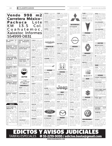 22 B! CLASIFICADOS CIUDAD DE MÉXICO JUEVES 4 DE JULIO DE 2024