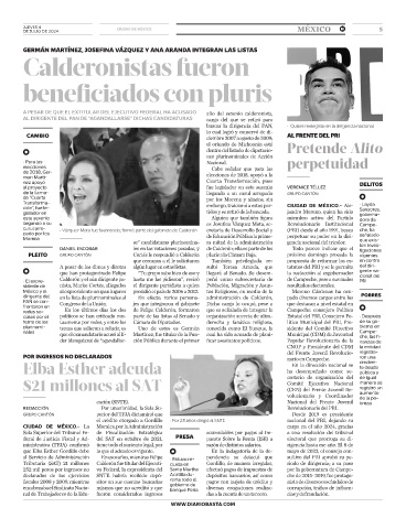 Tributaria (SAT) 21 millones Calderón fue titular del Ejecuti- cluida en Gordillo, de manera irregular, riodo de dirigencia; a su paso