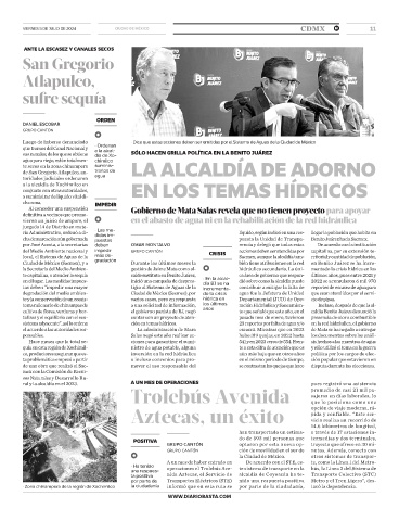 sus ramales, de los que se obtiene día de Xo- SÓLO HACEN GRILLA POLÍTICA EN LA BENITO JUÁREZ