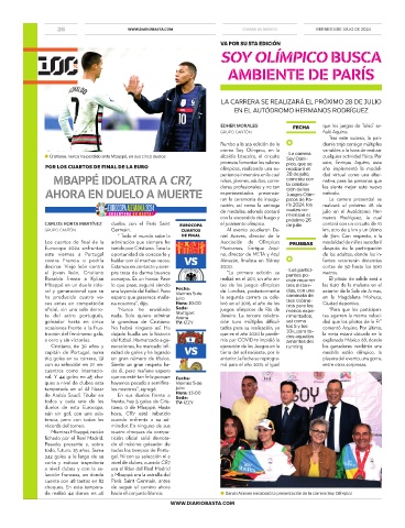 ● Cristiano, nunca ha perdido ante Mbappé, en sus cinco duelos alcaldía Iztacalco, el circuito • La carrera cualquier actividad física. Por