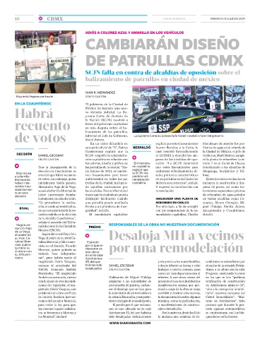 Tras la impugnación de la las patrullas de la ciudad. “Ha- rio capitalino que estos lineamientos para beneficiando a las alcaldías de