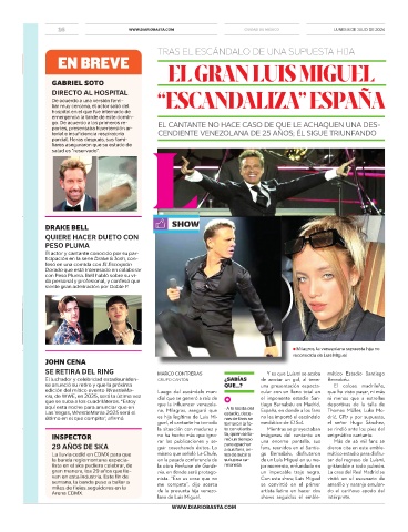 guel, el cantante ha tomado tomaron la fo- mediático de El Sol. el señor Hugo Sánchez,