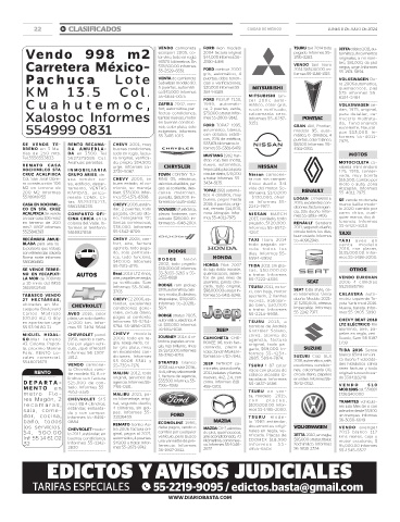22 B! CLASIFICADOS CIUDAD DE MÉXICO LUNES 8 DE JULIO DE 2024
