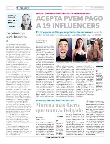 costear a una burocracia partidaria cadas por medios y candidatos tas de influencers que tocaron en que el PVEM se ve invo- blar a favor