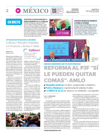 del histórico Partido Labo- lamento, lo cual llevó a to- nuel López Obrador, salió al paso al descartar Corte de Justicia de la Nación (SCJN). Confió en