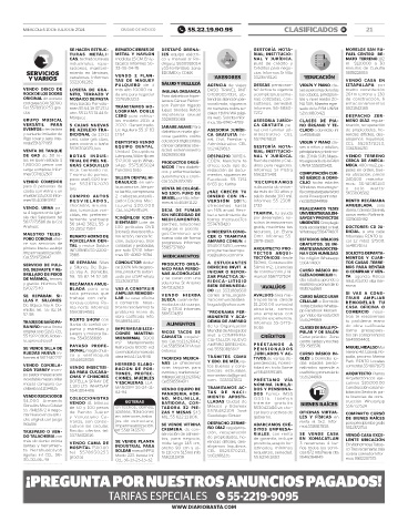 MIÉRCOLES 10 DE JULIO DE 2024 CIUDAD DE MÉXICO 55.22.19.90.95 CLASIFICADOS B! 21