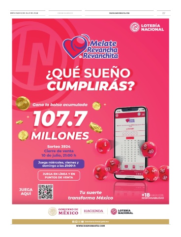 MIÉRCOLES 10 DE JULIO DE 20 MARTES 7 DE MARZO DE 202324 CIUDAD DE MÉXICO WWW.DIARIOBASTA.COM 27 WWW.DIARIOBASTA.COM