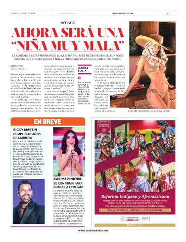 polémica cantante, cuyo nom- res. Y es que la artista se dejó contar el sonorense. ● Belinda “soltará todo” en su nueva canción