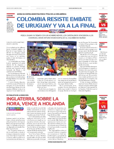 coles 2-1 a Holanda, en la semifi- tanto peligro cometieron una in- zó un disparo que se incrustó en