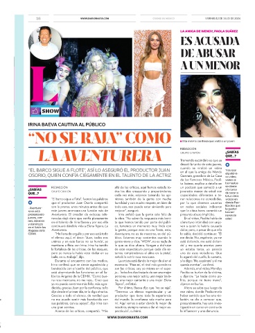 presentando Aventurera. El creador de exitosas tele- Irina señaló que la gente sale feliz de presunto abuso implícito. nores de