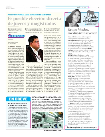 ●CIUDAD DE MÉXICO ●FAMILIARES DE SENTEN- ●QUEDA PENDIENTE LA Grupo Mexico,