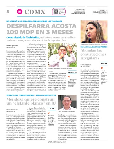nido e iluminación, así como la El gobierno de José Carlos de mantenimiento de las calles • El morenista capitalino que fueran demolidas, edificacio-