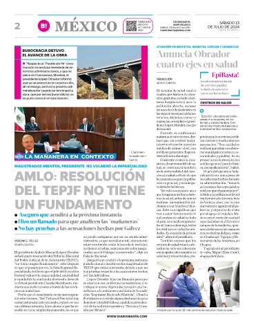 DEL TEPJF NO TIENE ción en general, y no solo pa- su administración, “todavía