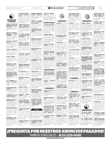 SÁBADO 13 DE JULIO DE 2024 CIUDAD DE MÉXICO 55.22.19.90.95 CLASIFICADOS B! 23