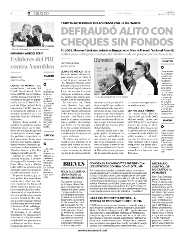 del tricolor. del exgo- parte de un apoyo económico sueldo, esta fue una de las for- Moreno recibió dinero por DINERO