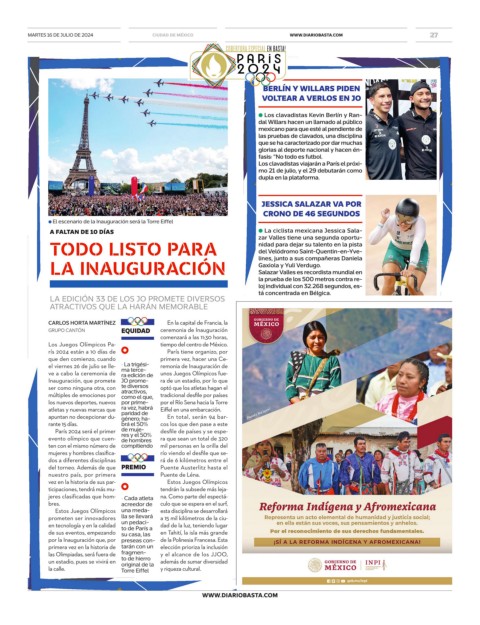 MARTES 16 DE JULIO DE 2024 CIUDAD DE MÉXICO WWW.DIARIOBASTA.COM 27
