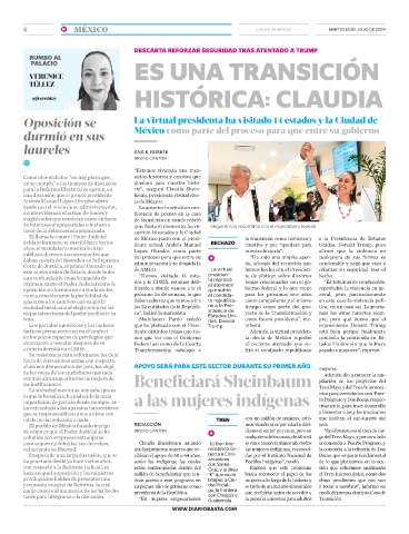 El llamado a que el Poder Judicial de México junto con el presi- la transición como histórica y a la Presidencia de Estados