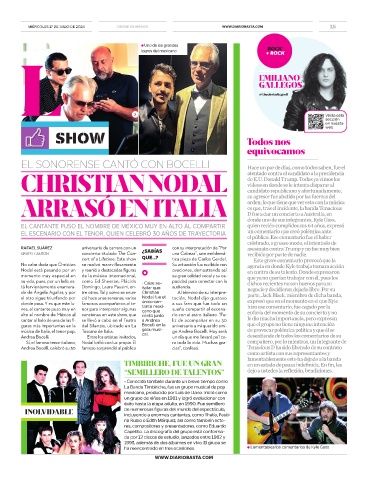 Sí, el famoso tenor italiano, Nodal brilló con luz propia. El ra toda la vida. Muchas gra- compañero, por lo mientras, un integrante de
