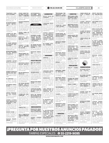 JUEVES 18 DE JULIO DE 2024 CIUDAD DE MÉXICO 55.22.19.90.95 CLASIFICADOS B! 21