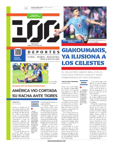con elevado número de victo- • Améri- de final respectivos al Aper- nada 3 ante Xolos. ra 2024 en donde el equipo