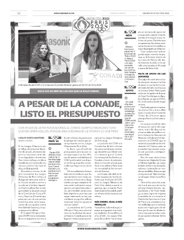 co apoyo a los atletas. Olímpico Mexicano aclaró el mayor presupuesto trae mejo- ticos, por lo que las atletas tu-