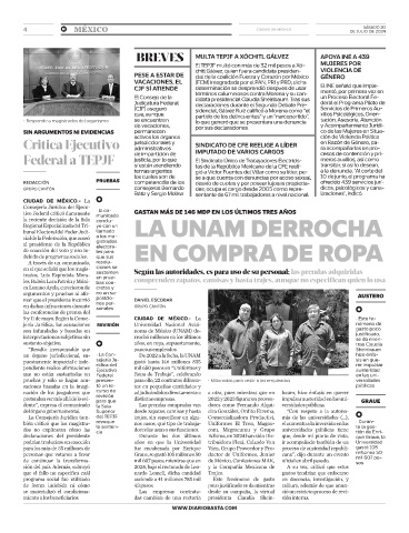 tivo Federal criticó duramente • El co- GASTAN MÁS DE 146 MDP EN LOS ÚLTIMOS TRES AÑOS