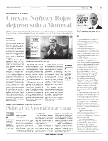 de Monreal contra sus correli- ciona que Rojas se distanció de gar firme en la coordinación de —Andrés Manuel López Obrador,