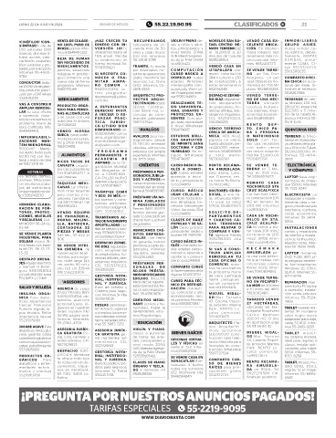 LUNES 22 DE JULIO DE 2024 CIUDAD DE MÉXICO 55.22.19.90.95 CLASIFICADOS B! 21