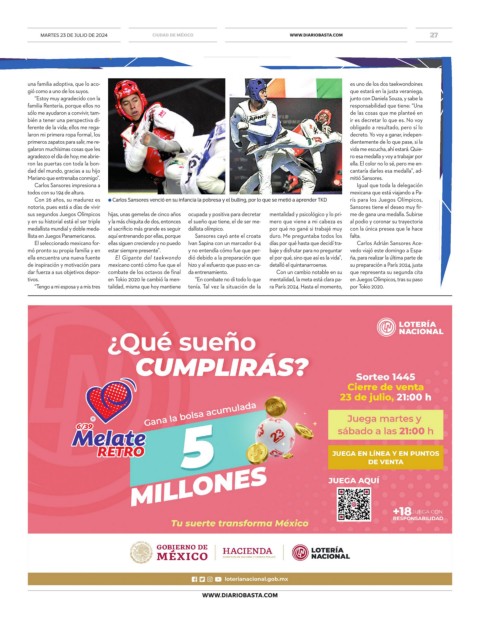 MARTES 23 DE JULIO DE 2024 CIUDAD DE MÉXICO WWW.DIARIOBASTA.COM 27