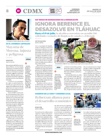 asignación definitiva de las di- y PRD, así mestre de este año, los vecinos to de los pro- Dicha situación impactó ne- sin que la morenista cumpla su