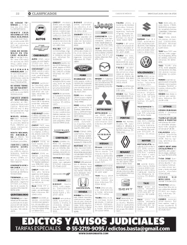 22 B! CLASIFICADOS CIUDAD DE MÉXICO MIÉRCOLES 24 DE JULIO DE 2024