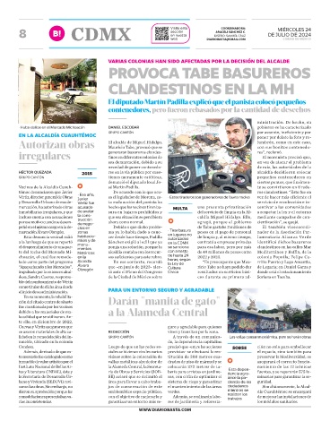 Vértiz, director general de Obras • Ese año, sa el legislador de Morena, es- • Estos tiraderos son generadores de fauna nociva vez de hacer más eficiente el