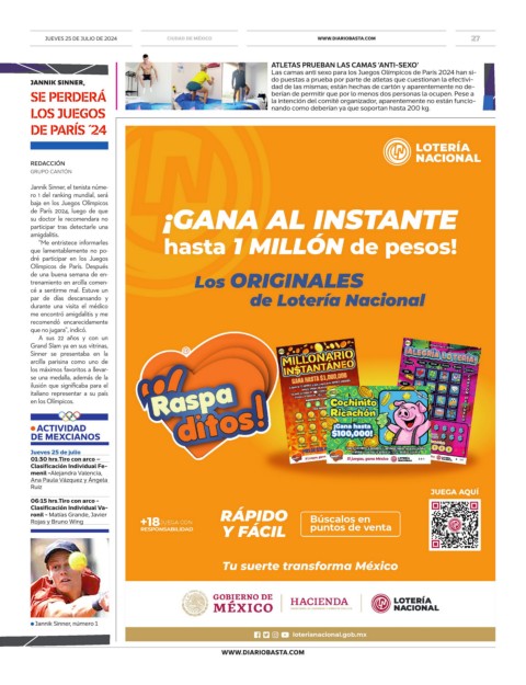 JUEVES 25 DE JULIO DE 2024 CIUDAD DE MÉXICO WWW.DIARIOBASTA.COM 27