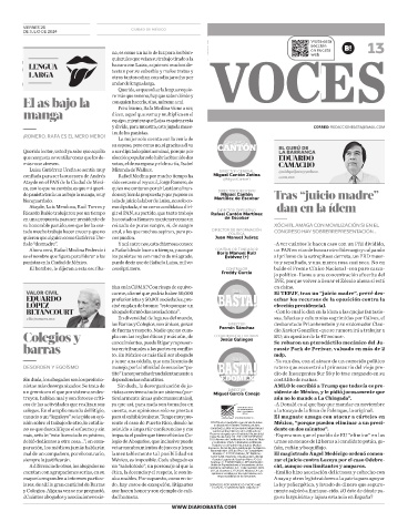 nión sobre el trabajo de otro, lo cotidia- sente el caso de Puerto Rico, donde he BASTA! es un periódico que circula de lunes México, “porque pueden eliminar a un presi-