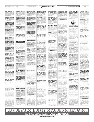 SÁBADO 27 DE JULIO DE 2024 CIUDAD DE MÉXICO 55.22.19.90.95 CLASIFICADOS B! 23