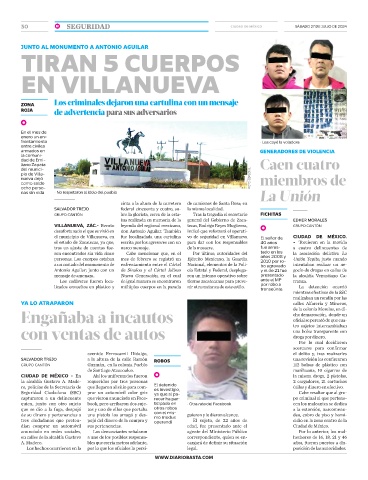 el municipio de Villanueva, en fue localizadada una cartulina vo de seguridad en Villanueva El señor de CIUDAD DE MÉXICO.