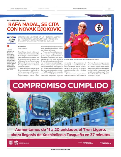 LUNES 29 DE JULIO DE 2024 CIUDAD DE MÉXICO WWW.DIARIOBASTA.COM 27