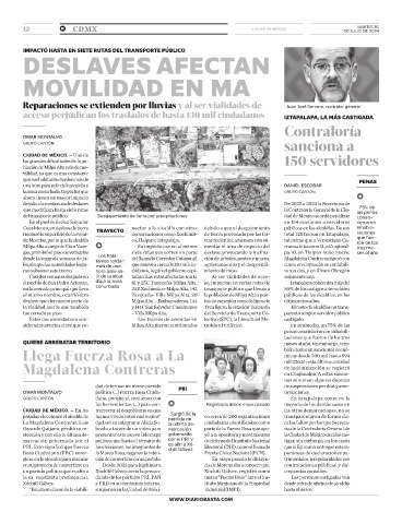del transporte público. • Desgajamiento de tierra por precipitaciones dad de México acordó penalizar consis-