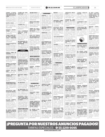 MIÉRCOLES 31 DE JULIO DE 2024 CIUDAD DE MÉXICO 55.22.19.90.95 CLASIFICADOS B! 21