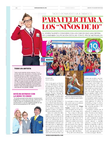 LA SERIE TÚ CREES tan importante, los destacados ● El joven Tadeo Bonavides es car música, con este tema es-