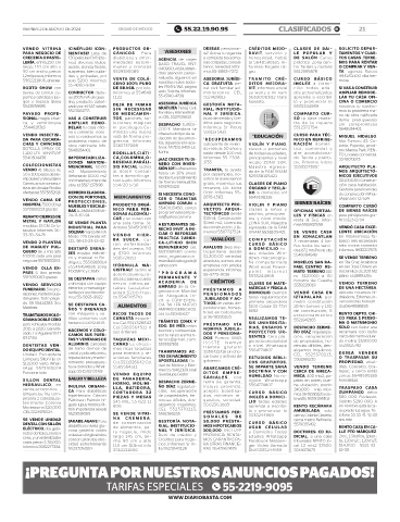 VIERNES 2 DE AGOSTO DE 2024 CIUDAD DE MÉXICO 55.22.19.90.95 CLASIFICADOS B! 21