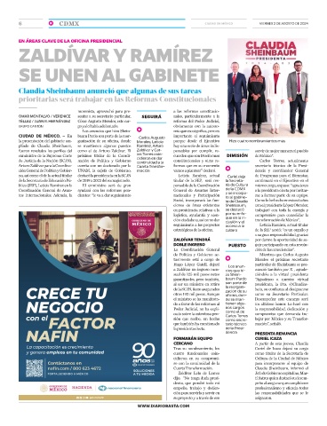 Coordinación General de Asun- ayudará con las reformas pen- General de Asuntos Inter- de la CDMX a la presidenta electa por invitar-