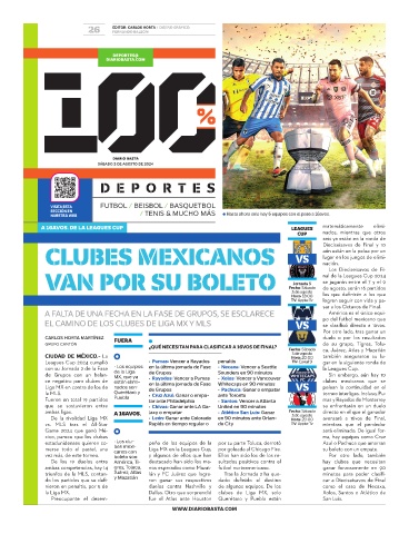 ce negativo para clubes de están elimi- • Rayados: Vencer a Pumas • Xolos: Vencer a Vancouver clubes mexicanos que se