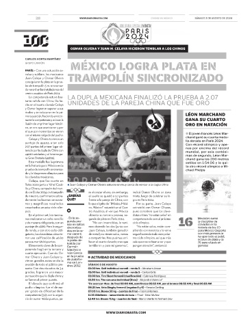 nos realizaron un salto sencillo • Es la se- gunda de plata en París 2024. competencia de cara al próximo 16 Medallas suma