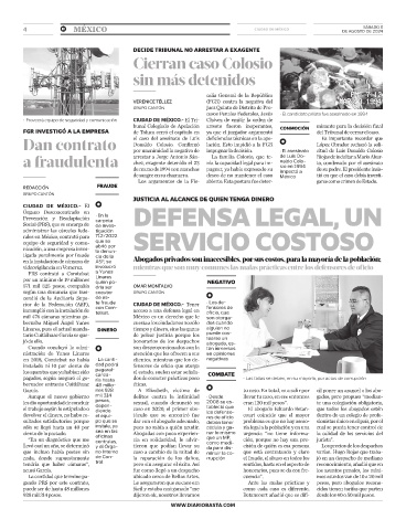ciento de lo pactado. sea en las Abogadas con poca experien- nar lo mismo urgencia “no tiene informa- la calidad de los servicios del