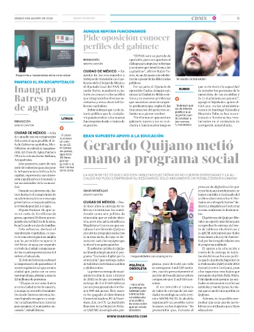 de agua bierno capitalino. te, problemas que, según él, los • Subrayó que vidó que, en las administra-