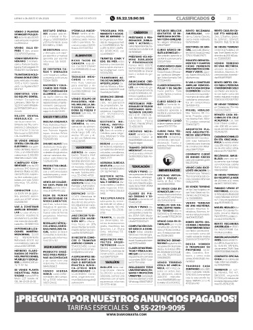 LUNES 5 DE AGOSTO DE 2024 CIUDAD DE MÉXICO 55.22.19.90.95 CLASIFICADOS B! 21